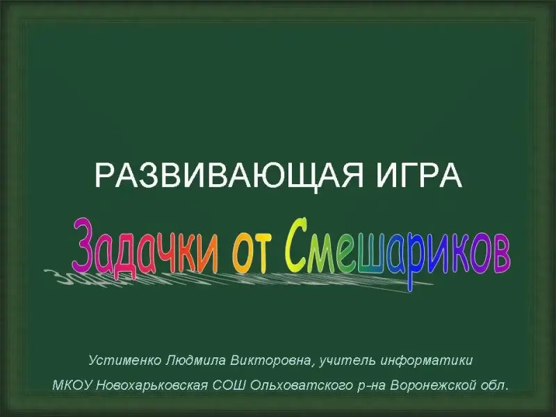Развивающая игра "Задачи от Смешариков" может быть проведена как на этапе актуализации и проверки усвоения изученного материала, так и на этапе объяснения нового материала. В первом случае учащиеся решают задачи самостоятельно в ходе игры (слайды с объяснением решений пропускаются), во втором - решаются совместно с учениками.