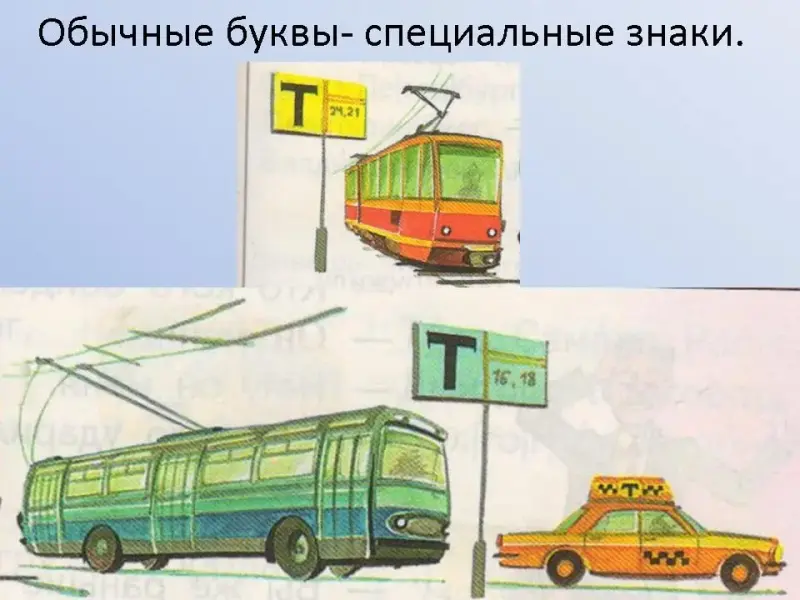 Учебник с 63 Обычные буквы- специальные знаки Представьте, что в город приехали туристы из другой страны. На улицах они увидели знак-букву Т и просят вас разъяснить, что она означает. |