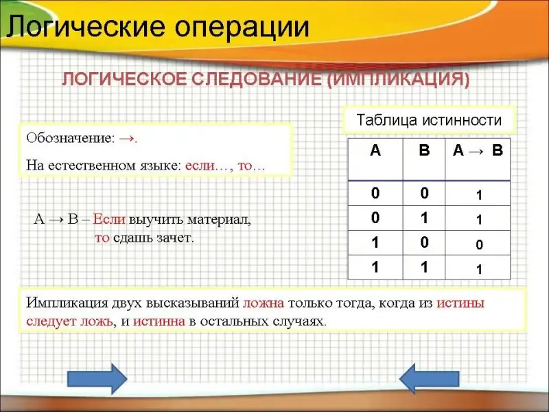 Таблица истинности логического следования