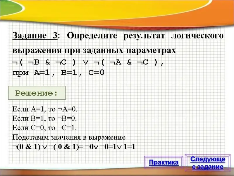 Задание 3: Определите результат логического выражения при заданных параметрах