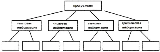 Заполните схему: в соответствующих блоках укажите название программ, с помощью которых обрабатывается информация на компьютере. [Рисунок1].