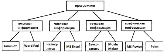 (Схема и названия программ приведены на доске. Учащиеся перерисовывают схему в тетрадь и заполняют её).