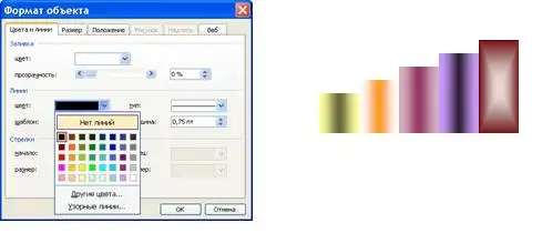 - выбрать цвет заливки (закладка Цвета и линии) и способ заливки (закладка Градиентная) (рис. 3);