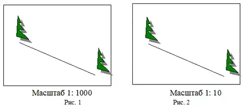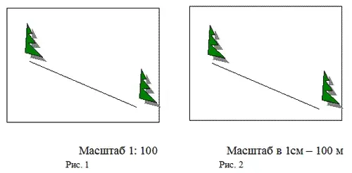 6*. Расстояние между деревьями 47 метров. Определите, на каком рисунке указан неверный масштаб, объясните ваш выбор.