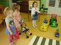 Воспитатель (выбирает участников игры): Ты, Максим будешь водителем машины. Катя и Аня будут пешеходами. А Дима будет показывать светофор.