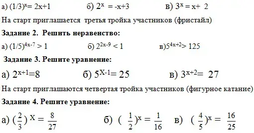 - актуализация опорных знаний при решении показательных уравнений и неравенств;