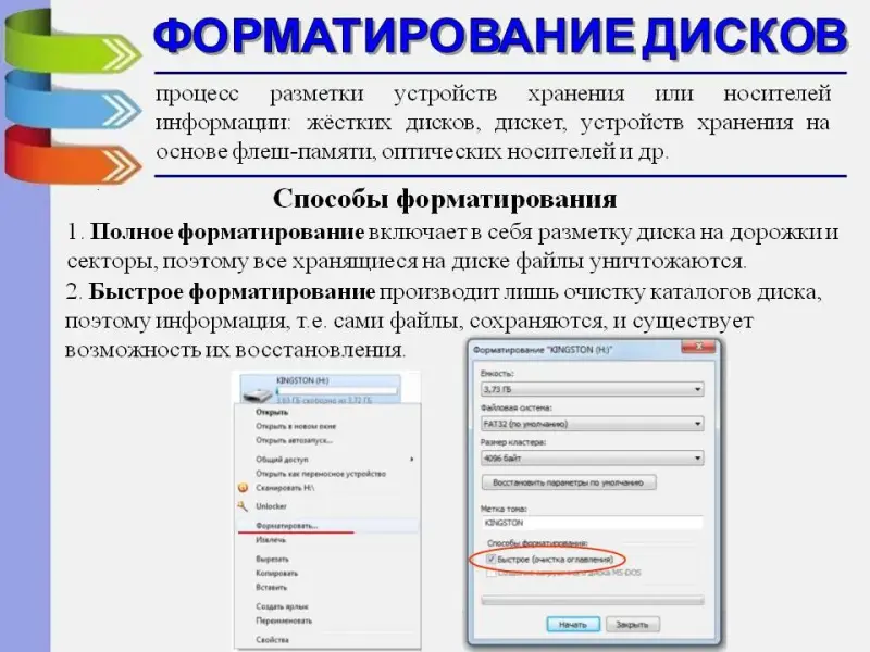 Слайд 5. Форматирование дисков