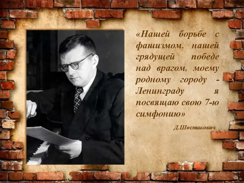 О симфонии №7 Д.Д.Шостаковича. Сейчас я предлагаю Вам прослушать радиообращение Дмитрия Шостаковича. Передача из блокадного Ленинграда 16 сентября 1941 года.