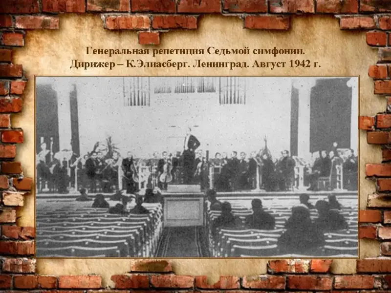 А сам, Карл Ильич Элиасберг позже он вспоминал: "Не мне судить об успехе того памятного концерта. Скажу только, что с таким воодушевлением мы не играли еще никогда. И в этом нет ничего удивительного: величественная тема Родины, на которую находит зловещая тень нашествия, патетический реквием в честь павших героев - все это было близко, дорого каждому оркестранту, каждому, кто слушал нас в тот вечер. И когда переполненный зал взорвался аплодисментами, мне показалось, что я снова в мирном Ленинграде, что самая жестокая из всех войн, когда-либо бушевавших на планете, уже позади, что силы разума, добра и человечности победили".