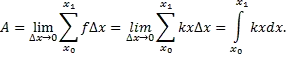 Далее составляют сумму (интегральную сумму), выражающую приближенное значение искомой величины. Переходя к пределу при , находят искомую величину I в виде интеграла