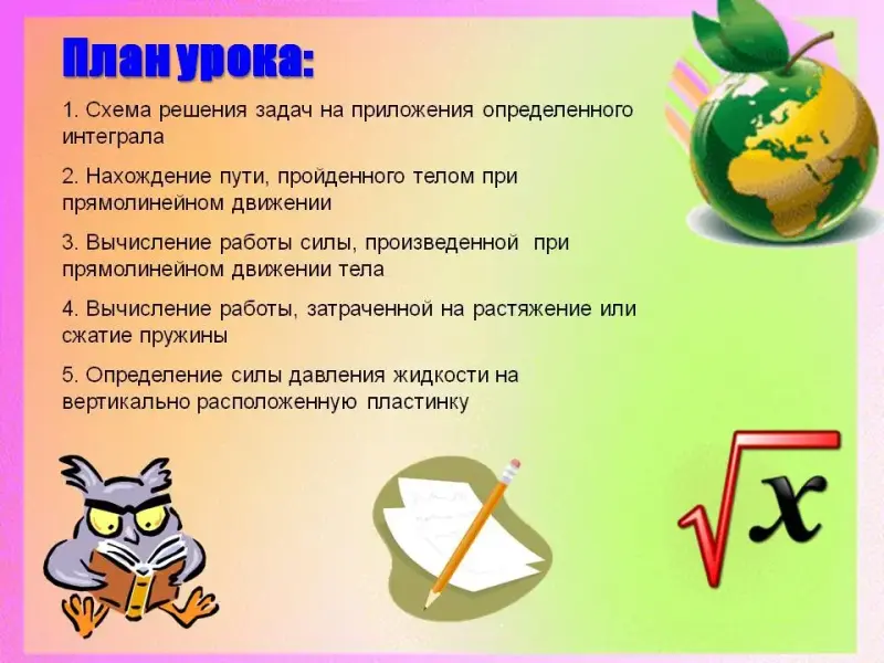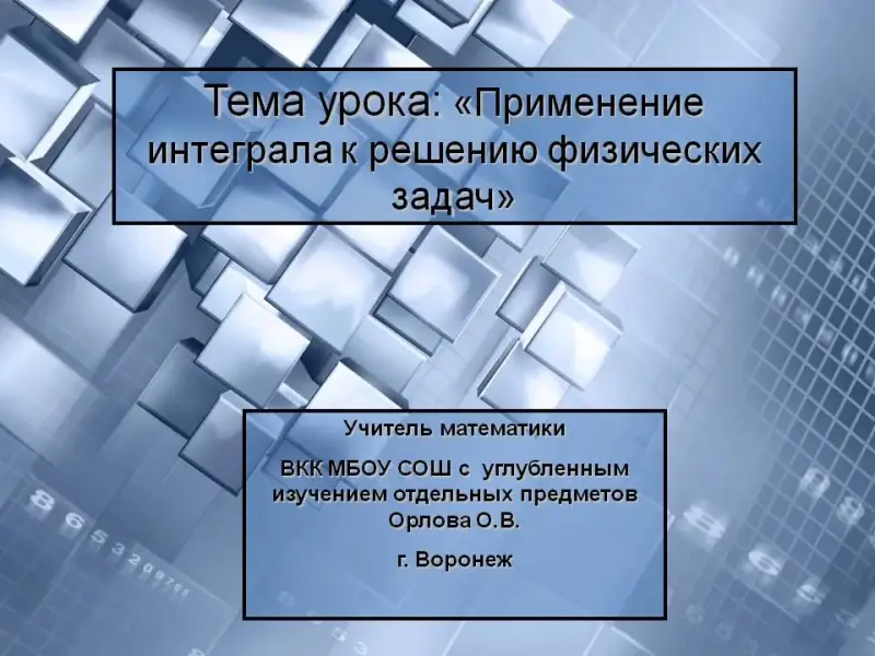 Урок математики по теме "Применение интеграла к решению физических задач"