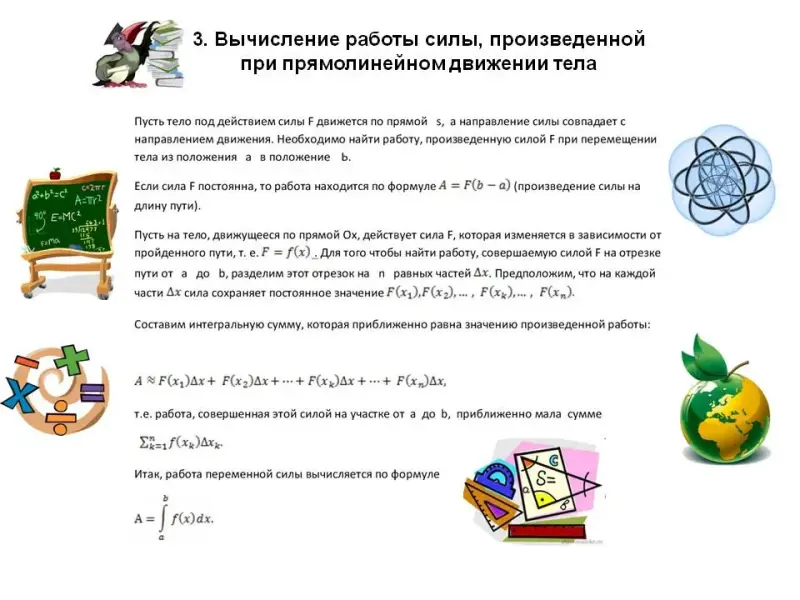3. Вычисление работы силы, произведенной при прямолинейном движении тела