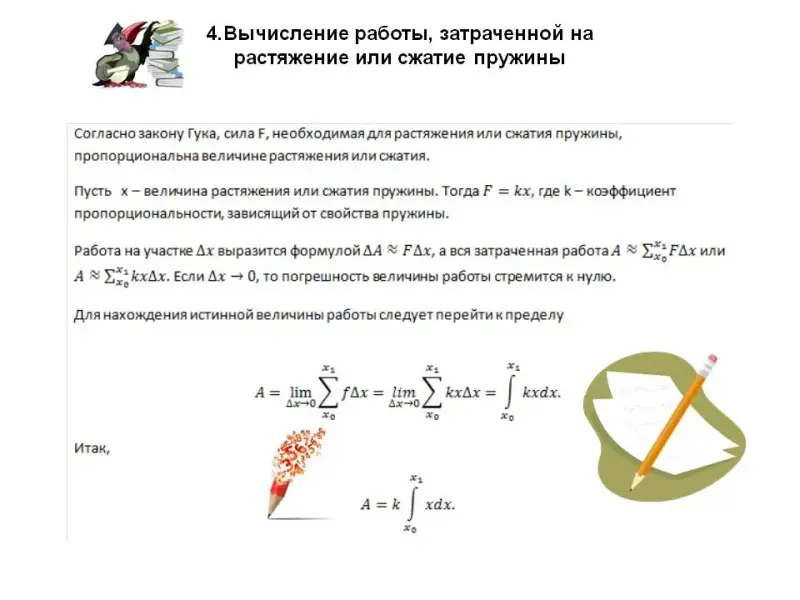 4. Вычисление работы, затраченной на растяжение или сжатие пружины