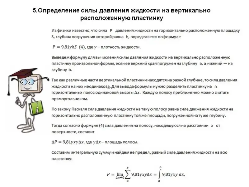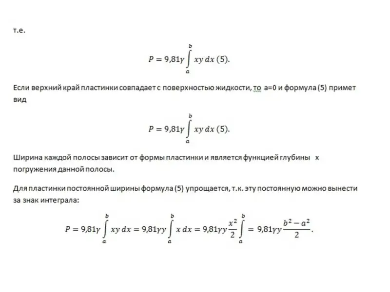 5. Определение силы давления жидкости на вертикально расположенную пластинку