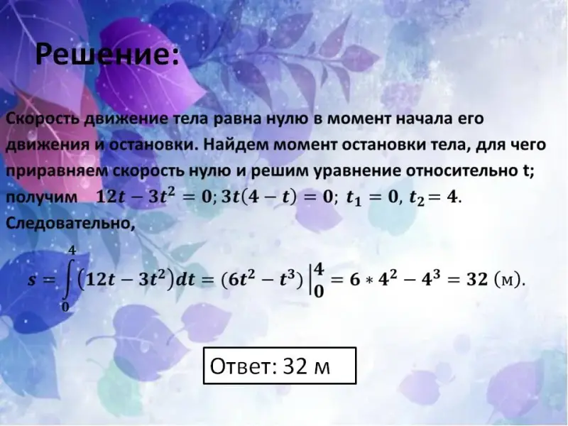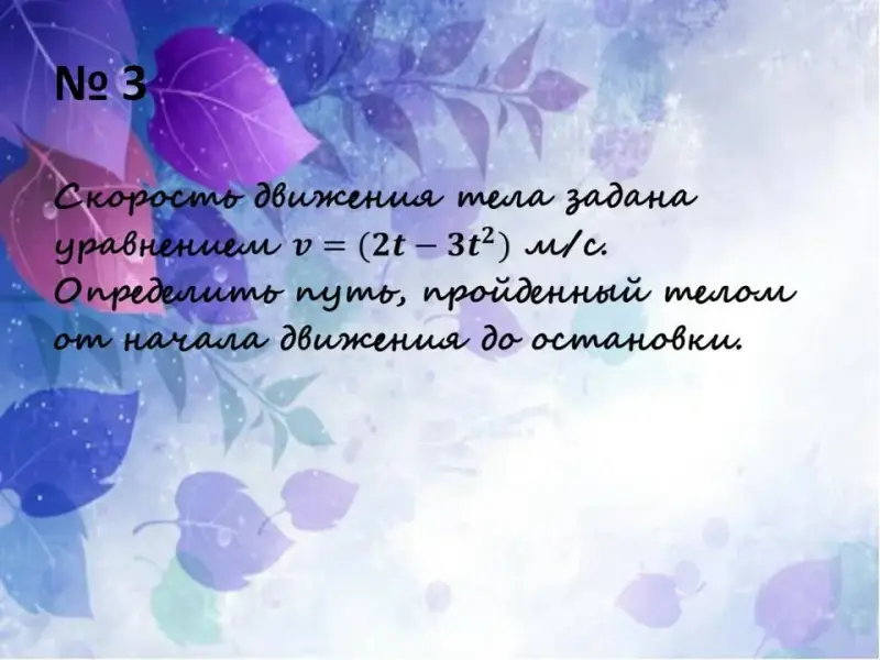 3) Скорость движения тела задана уравнением м/с. Определить путь, пройденный телом от начала движения до остановки.