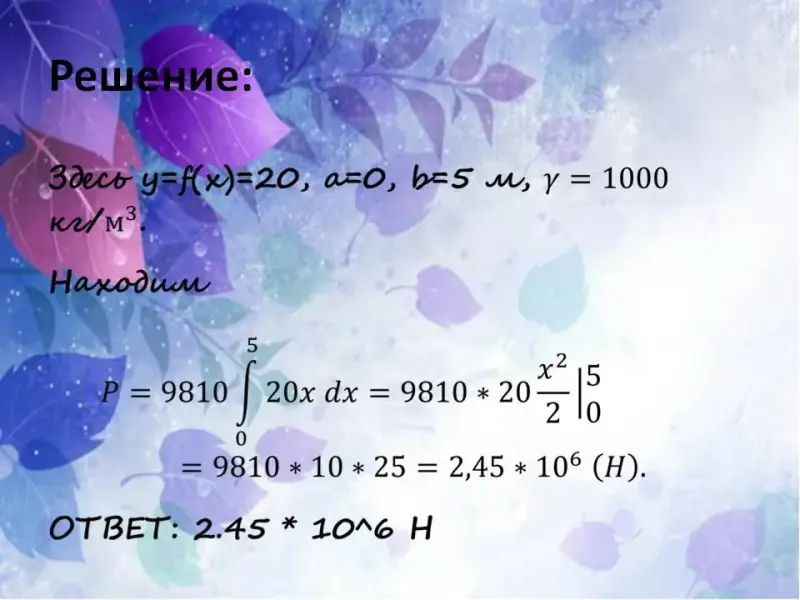 Здесь y = f(x) = 20, a = 0, b = 5 м, кг/.