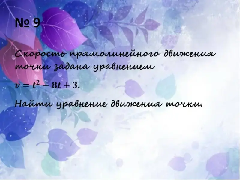 9) Скорость прямолинейного движения точки задана уравнением . Найти уравнение движения точки.