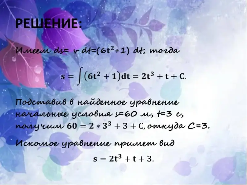1. Скорость движения тела задана уравнением . Найти уравнение движения, если в начальный момент времени