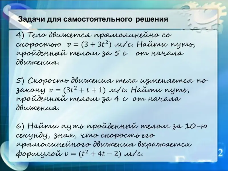 2. Нахождение пути, пройденного телом при прямолинейном движении