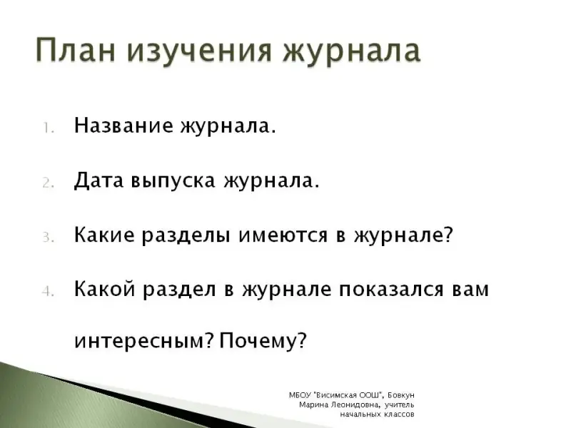 4) Рассказ о журнале по плану. |