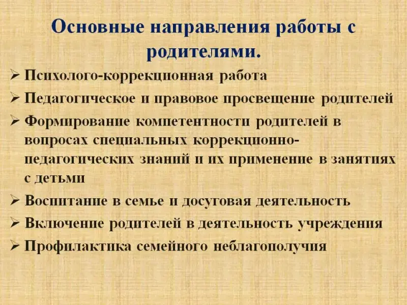 - Коррекция неадекватных поведенческих и эмоциональных реакций родителей детей с отклонениями в развитии.