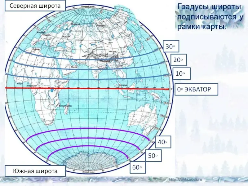 - давать определения понятиям: географическая широта и географическая долгота,
