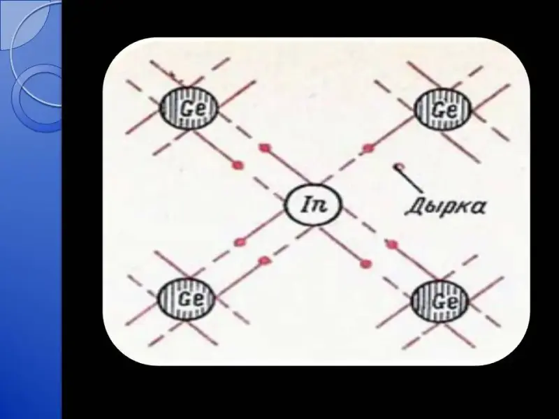 Слайд 10. 2) акцепторные примеси (принимающие) - создают "дырки" , забирая в себя электроны.