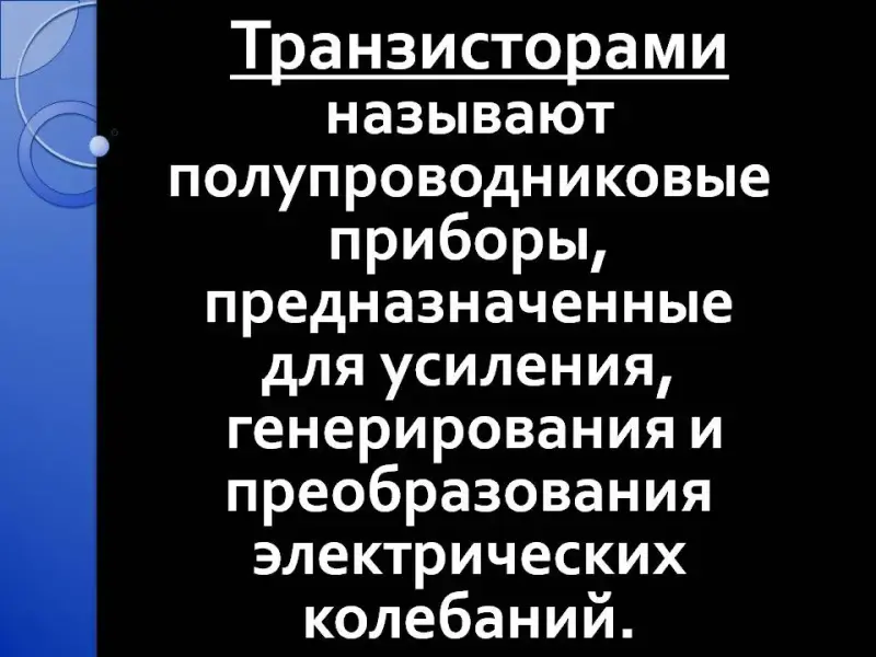 Транзисторами называют полупроводниковые приборы, предназначенные для усиления, генерирования и преобразования электрических колебаний.