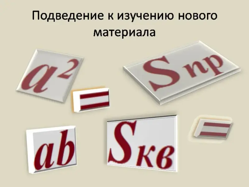 - Какие изученные сведения нам сегодня пригодятся? (Понятия площади, стороны квадрата, единицы измерения площадей, действия сложения, вычитания, умножения, деления, степень числа).