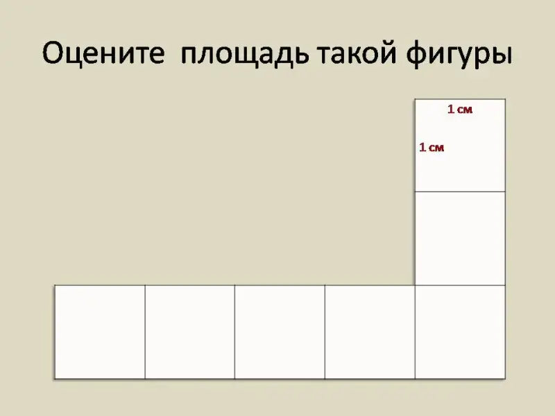 - Подумайте, что для этого можно сделать? (Для этого фигуру удобно разделить на квадраты со стороной 1 см. Найти площадь одного квадрата, затем сложить полученные площади, или умножить площадь одного квадратика на количество таких квадратов).