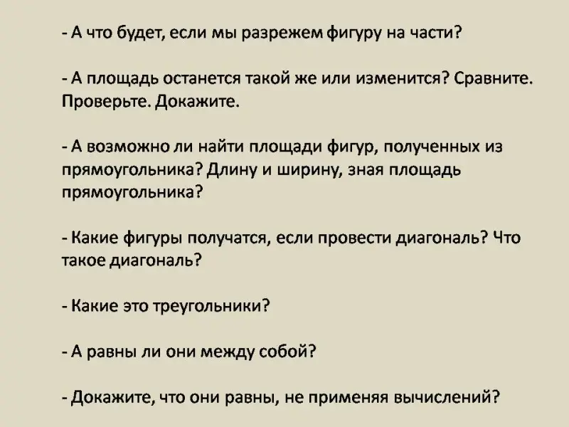 - А возможно ли найти площади фигур, полученных из прямоугольника? Длину и ширину, зная площадь прямоугольника?