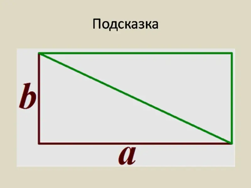 - Докажите, что они равны, не применяя вычислений? (Разрезать прямоугольник по диагонали, полученные треугольники наложить друг на друга, они совпадают).