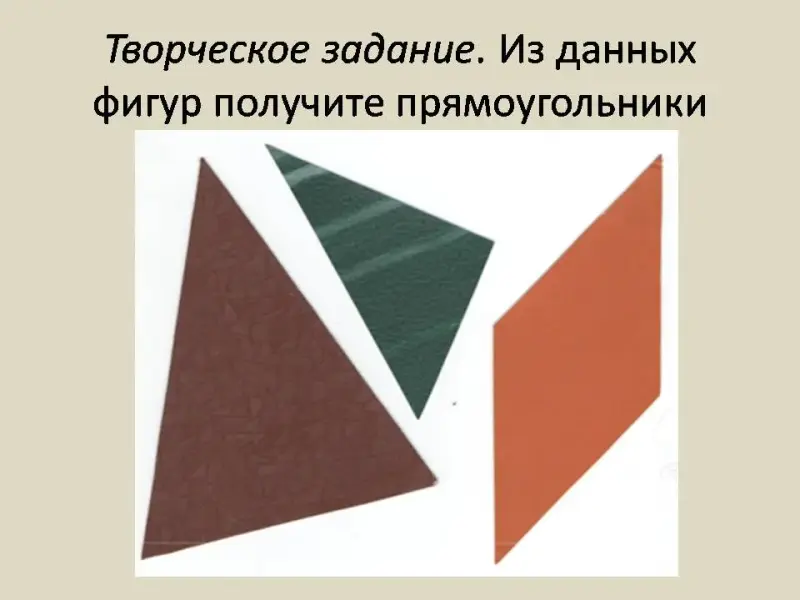 - Творческое задание. Из данных фигур получите прямоугольники (на столах у каждого учащегося лежит одна из фигур, можно добавить другие).