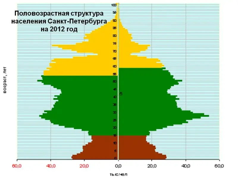 Слайд 12 - Половозрастная структура населения Санкт-Петербурга на 2012 год