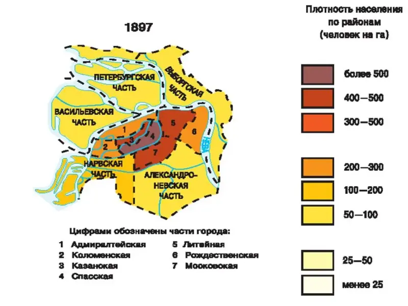 Т.е рост обусловлен миграционным притоком. На 1890 год 70% населения города это люди, рожденные не в Санкт-Петербурге.