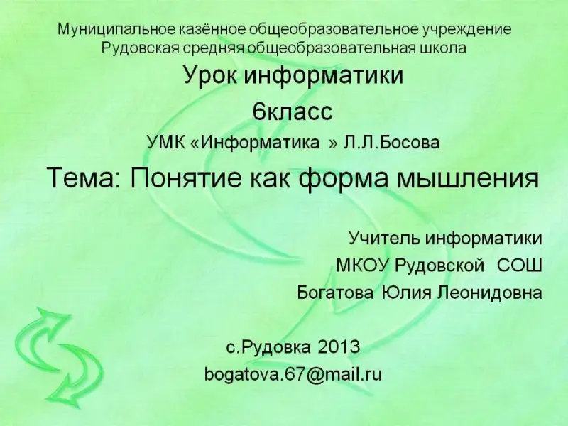 Тема урока: "Понятие как форма мышления". 6-й класс