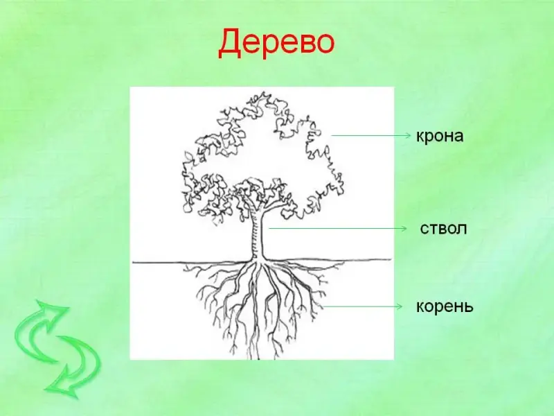 Все представили дерево, рисуем на бумаге. Дерево (тополь) - это высокое растение, у которого есть ствол и крона. Дерево (ёлка)- это корень, ствол и иголки. Дерево - это растение, у которого есть корень, ствол, листья.
