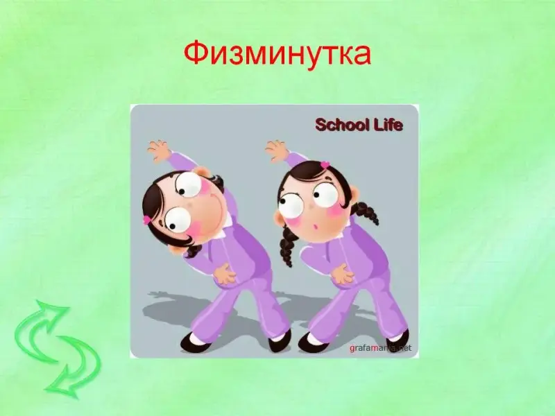 | 6.Физминутка | Организация активности и профилактика утомляемости | Групповая работа | Музыкальная пауза | Учащиеся выполняют физминутку используя различные упражнения профилактики | 2 мин | Слайд 17 | |