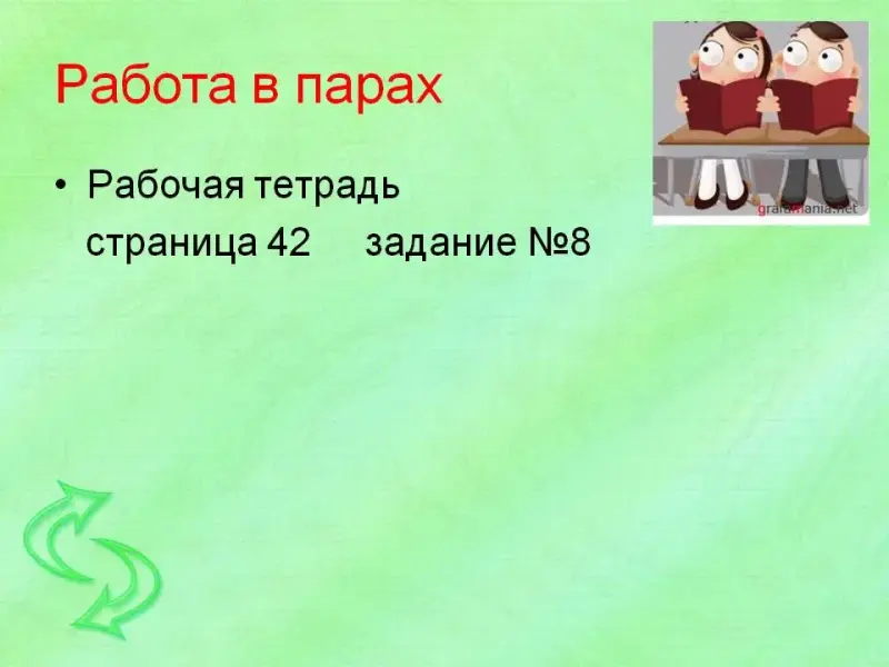 А теперь, откройте рабочие тетради на странице 42. И выполняем задание №8.