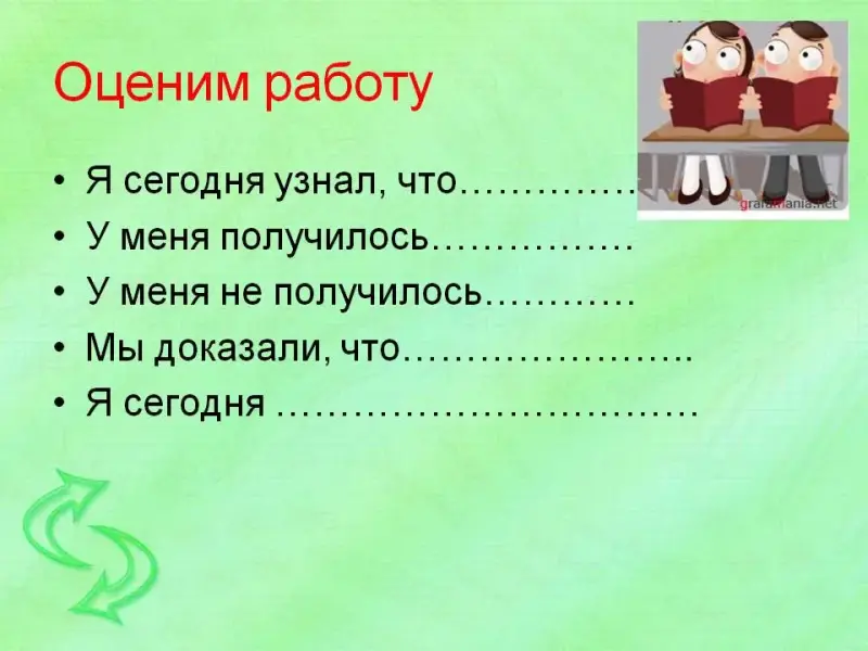 Я сегодня узнал, что… У меня получилось… У меня не получилось… Я доказал, что… |