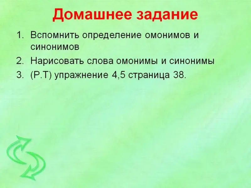 Выборочно: 1. Вспомнить определение понятия омоним, синоним привести примеры омонимов и синонимов 2. Нарисовать слова омонимы; 3. упр.4,5 на стр.38. |