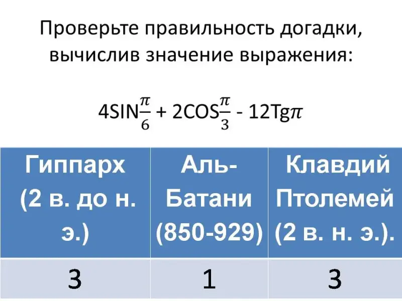 В) Решите примеры и определите год открытия функции ТАНГЕНС.