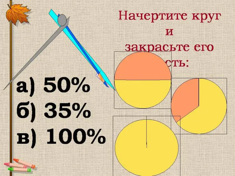 4. Начертите круг и закрасьте его часть:
