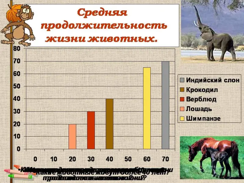 Рассмотрим следующую задачу: на столбчатой диаграмме показана средняя продолжительность жизни некоторых животных: