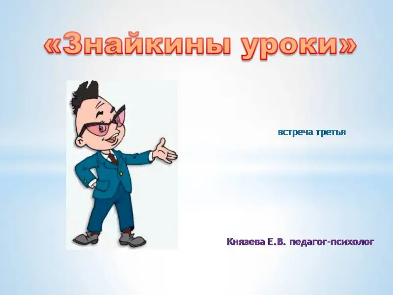 Знайкины уроки», состоят из 12 встреч, специально разработанных и направленных на развитие познавательных способностей детей старшего дошкольного возраста.