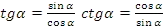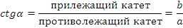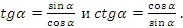 Для функций тангенс и котангенс получаем следующие равенства из того же прямоугольного треугольника: ![]()