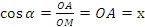 Применим уже известные нам отношения между сторонами и углами прямоугольного треугольника и получим, что координата х (абсцисса) точки М будет равна:
