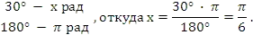 В случае, когда надо перейти от градусной меры в радианную можно применять формулу: