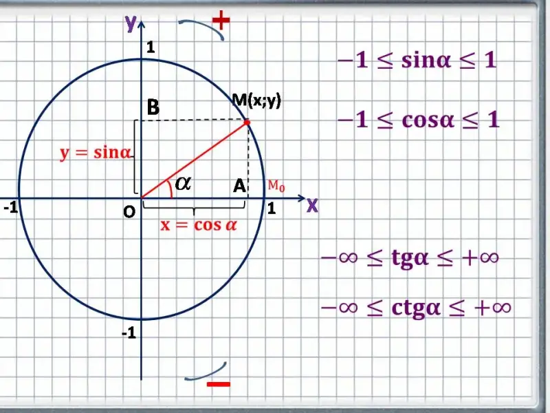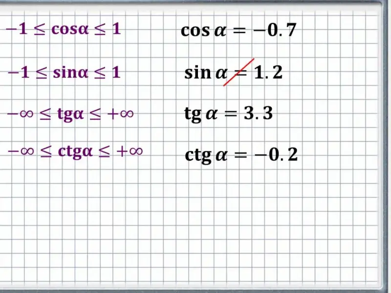 - В каких пределах может изменяться значение синуса, косинуса, тангенса и котангенса?