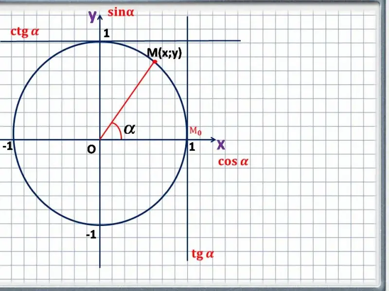 некоторой функцией. Таким образом, у нас появляются тригонометрические функции, которые выражают зависимость между координатами точки единичной окружности в системе координат и углом поворота, при